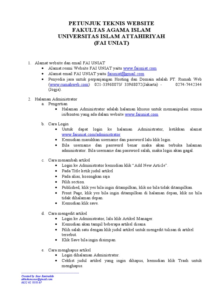 Petunjuk Teknis Website Fai Uniat Dot Com